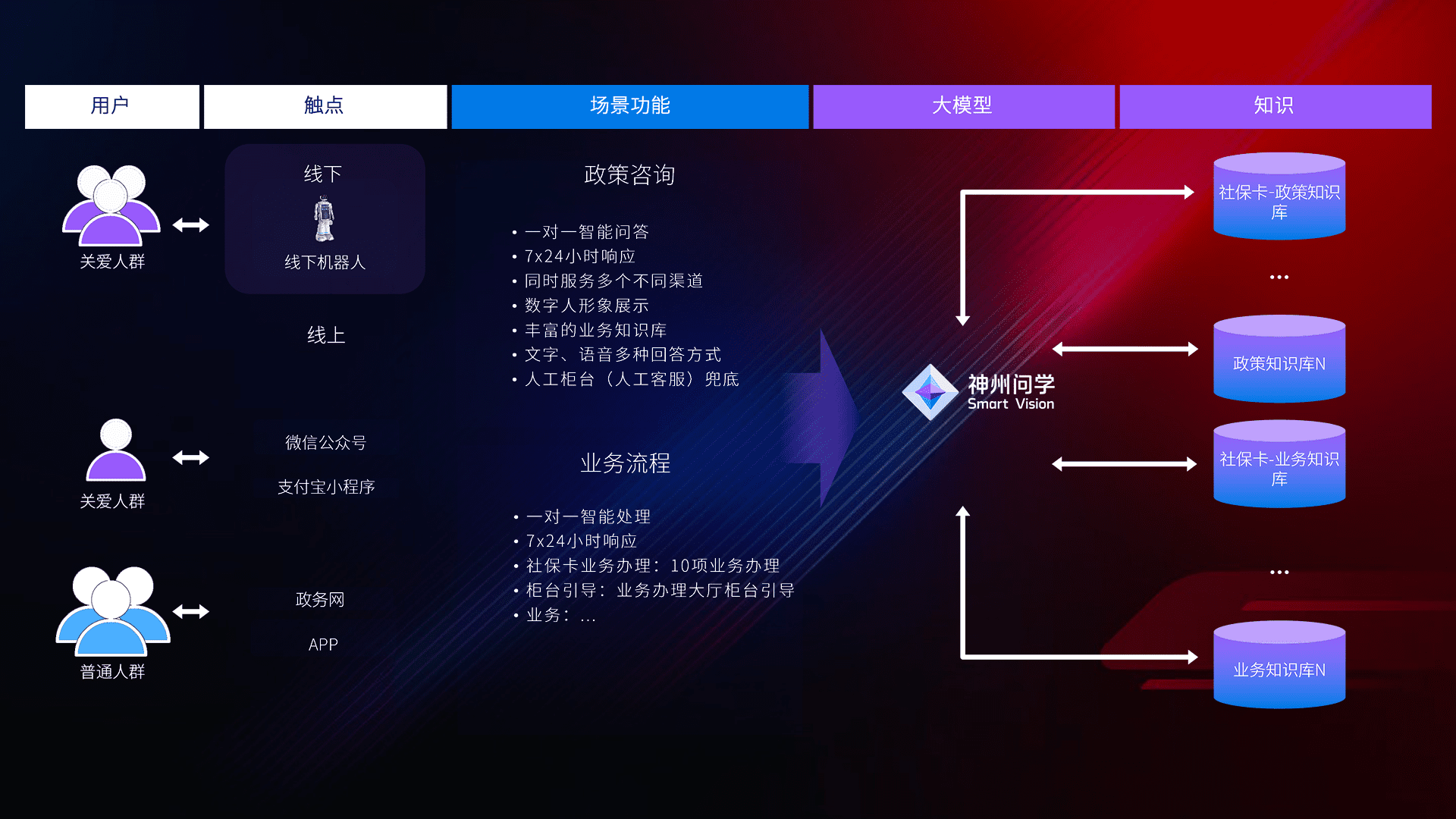 • 线上线下全覆盖:线上提供微信公众号、、支付宝小程序、、、、政务网、、app多种渠道,,与线下机器人形成完整服务体系。。。。